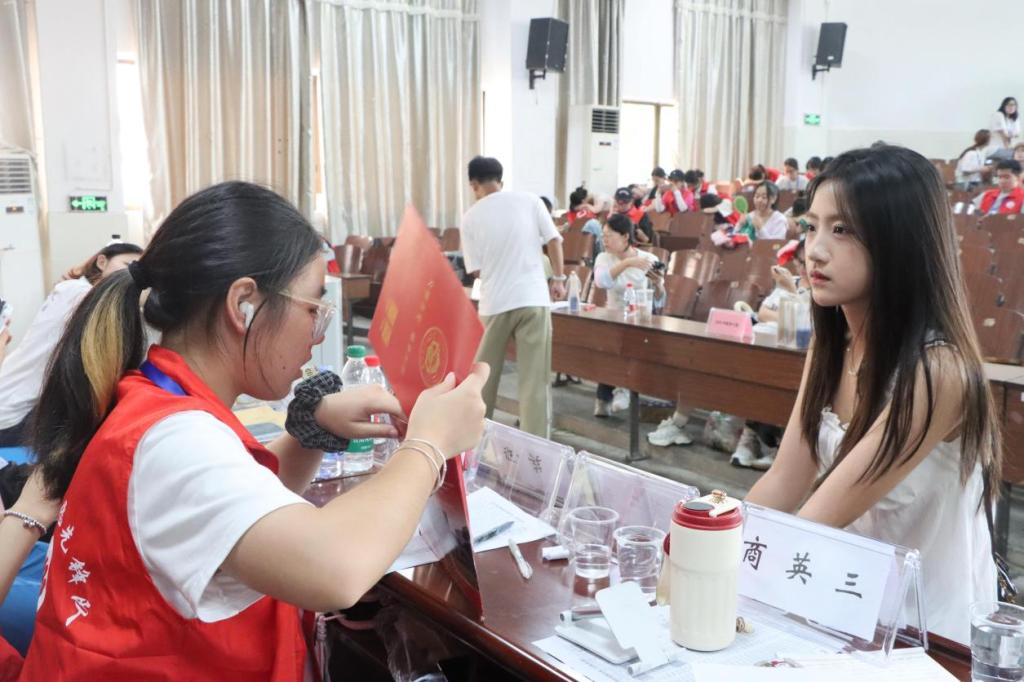报到环节中,各班同伴学长高效完成新生签到核验、学生卡激活及入学资料发放等工作,耐心回应新生关于校园生活的咨询。志愿者们则穿梭校园,主动帮搬行李、指引路线,用热情服务帮助新生快速融入校园生活。学院领导老师细致询问新生适应情况,鼓励新生们积极调整状态,早日适应大学新生活。